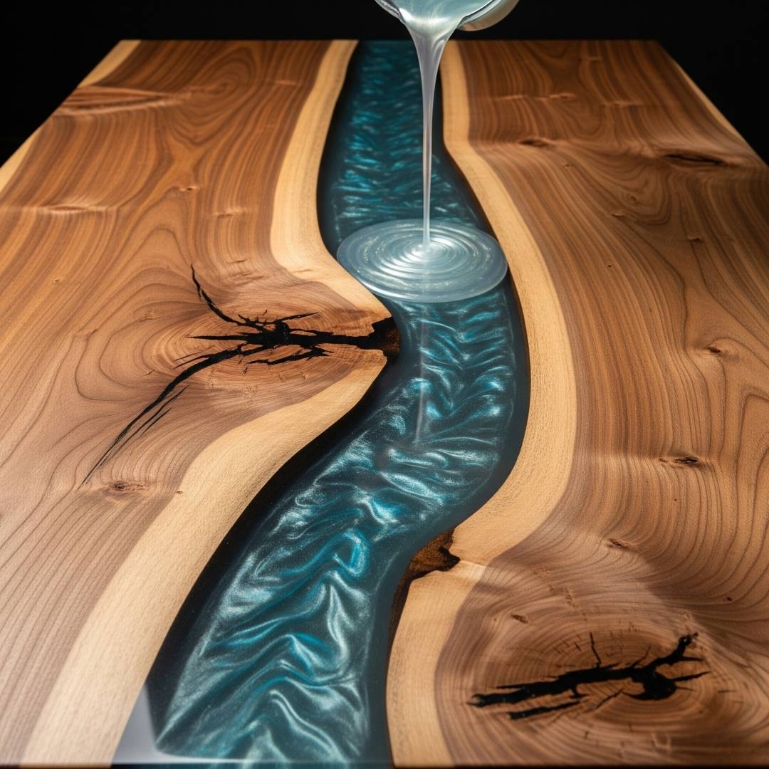 Nuestro secreto reside en la aplicación de la resina epóxica. Es un balance artístico que dominamos para lograr acabados perfectos.